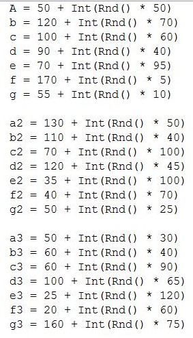Here is a sample of some of the random numbers generated in the VB 2008 code. These are just some of the numbers used to ascertain the speed of the horses.